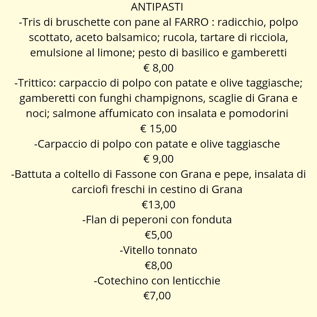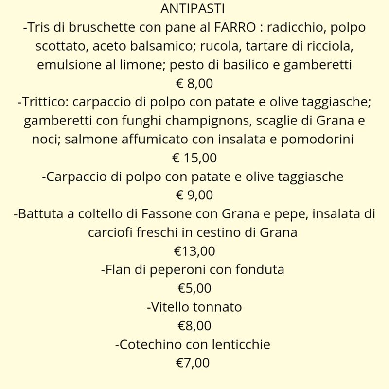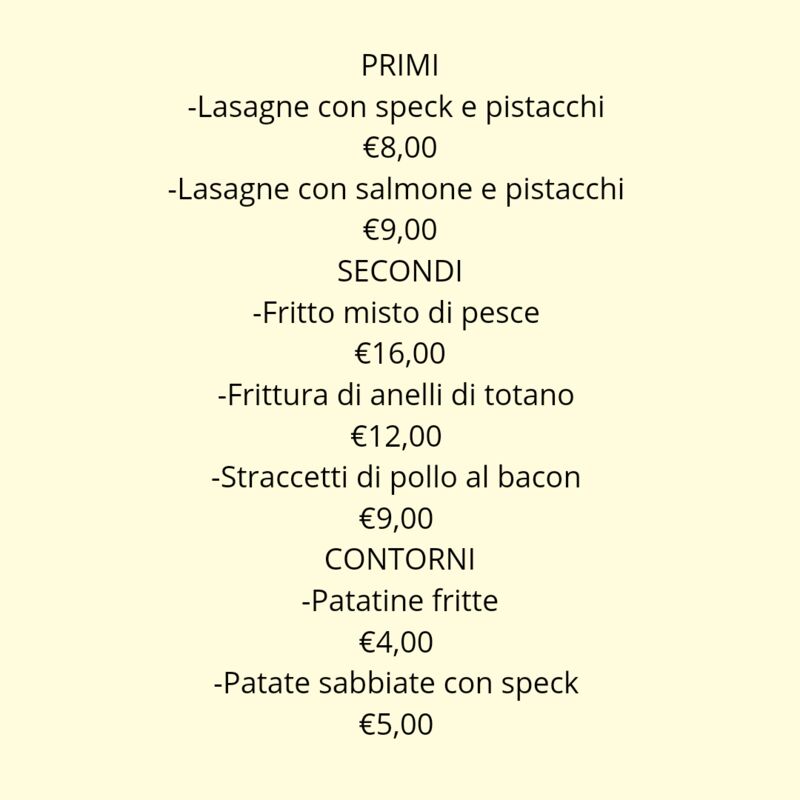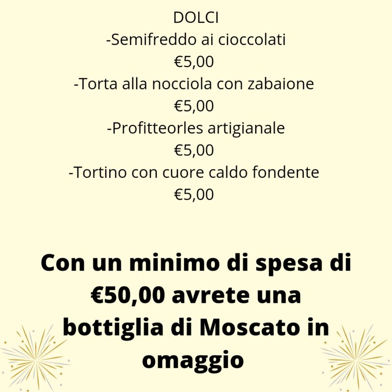 E' PREVISTO ANCHE UN MENU' D'ASPORTO A € 29.00